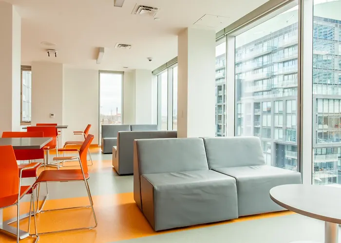 Residence & Conference Centre - Toronto Downtown, di 41 m², è situato a soli 7 minuti a piedi da Spirit of York e a 5 km dall'aeroporto di Toronto-City Billy Bishop. L'alloggio per studenti, dotato di due piscine e di un centro fitness, si trova a pochi minuti a piedi dal Distretto Storico della Distilleria.